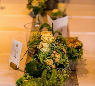 Jubiläen, Geburtstage, Taufe oder Kommunion, Konzerte, Firmen- oder Weihnachtsfeiern – Blumenarrangements und die passende Dekoration tragen maßgeblich zu einer festlichen Atmosphäre bei. Mit unserer Saal-, Tisch- und Kirchendekoration verleihen wir Ihrem Anlass ein stimmungsvolles Ambiente, das Ihnen und Ihren Gästen positiv in Erinnerung bleiben wird.