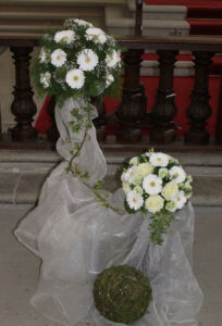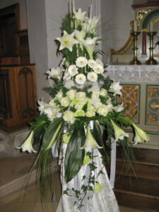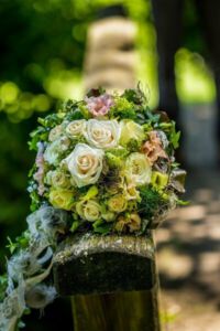 Was wäre eine Hochzeit ohne Blumen? Vom Brautstrauß und dem Haarschmuck aus Blumen über die Tisch- und Raumdekoration bis hin zum Auto- und Kirchenschmuck – wir lassen Ihren großen Tag perfekt zur Geltung kommen. Den Blumenschmuck für Ihre Hochzeit fertigen wir ganz individuell, ob klassisch, modern, schlicht oder ausgefallen, in ihren Lieblingsfarben mit ihren Lieblingsblumen. In einem persönlichen Gespräch finden wir gemeinsam raus, was am besten zu Ihnen passt.